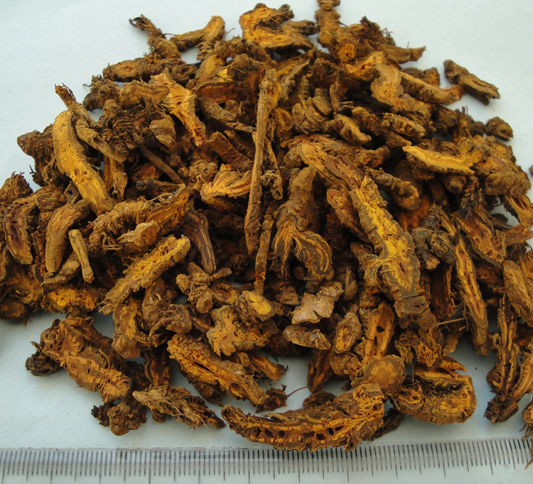 或暗棕色,木部鲜黄色或橙黄色,呈放射状排列,髓部有时中空。气微,味极其苦。
